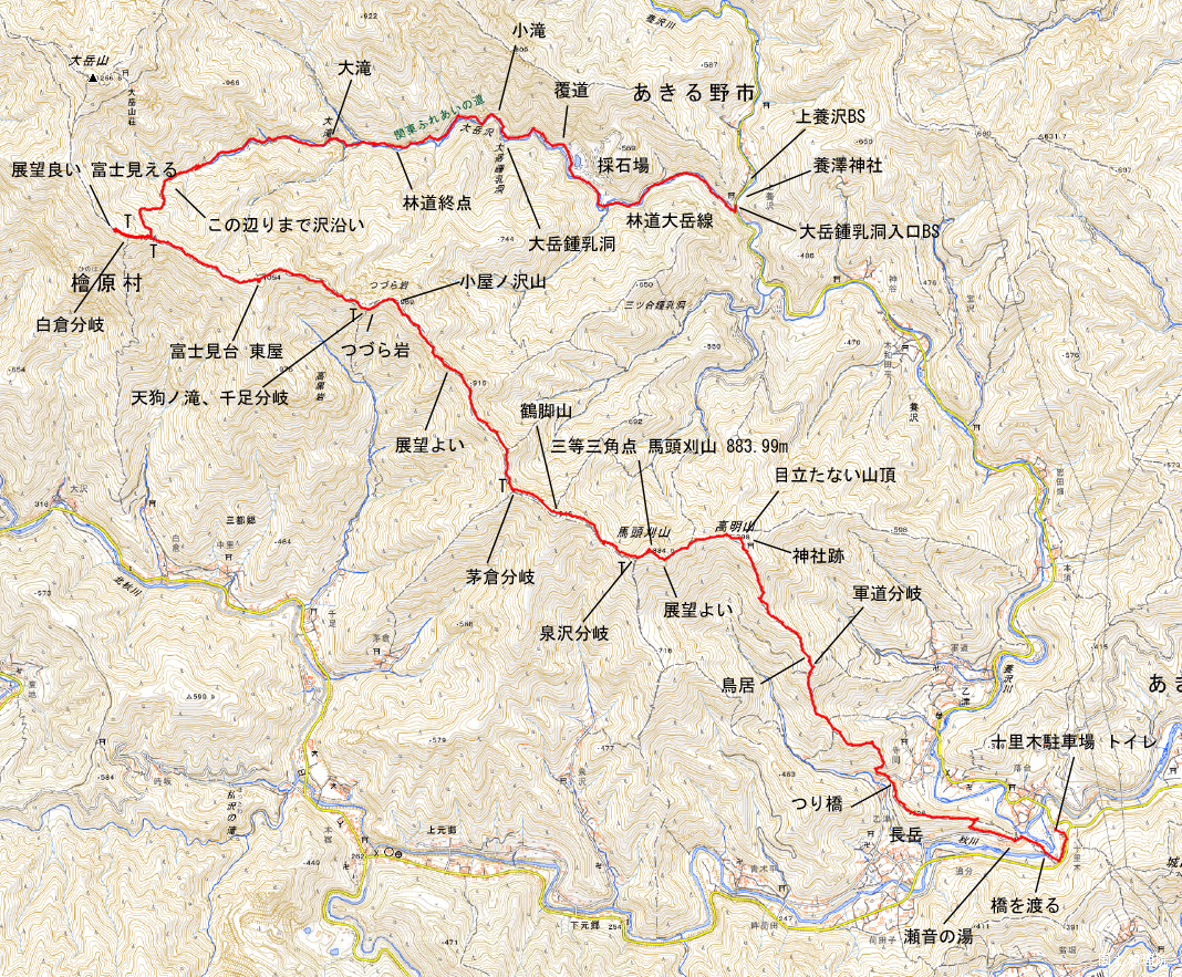 東京都あきる野市 大岳鍾乳洞入口から大滝、馬頭刈尾根(2026/04/08)