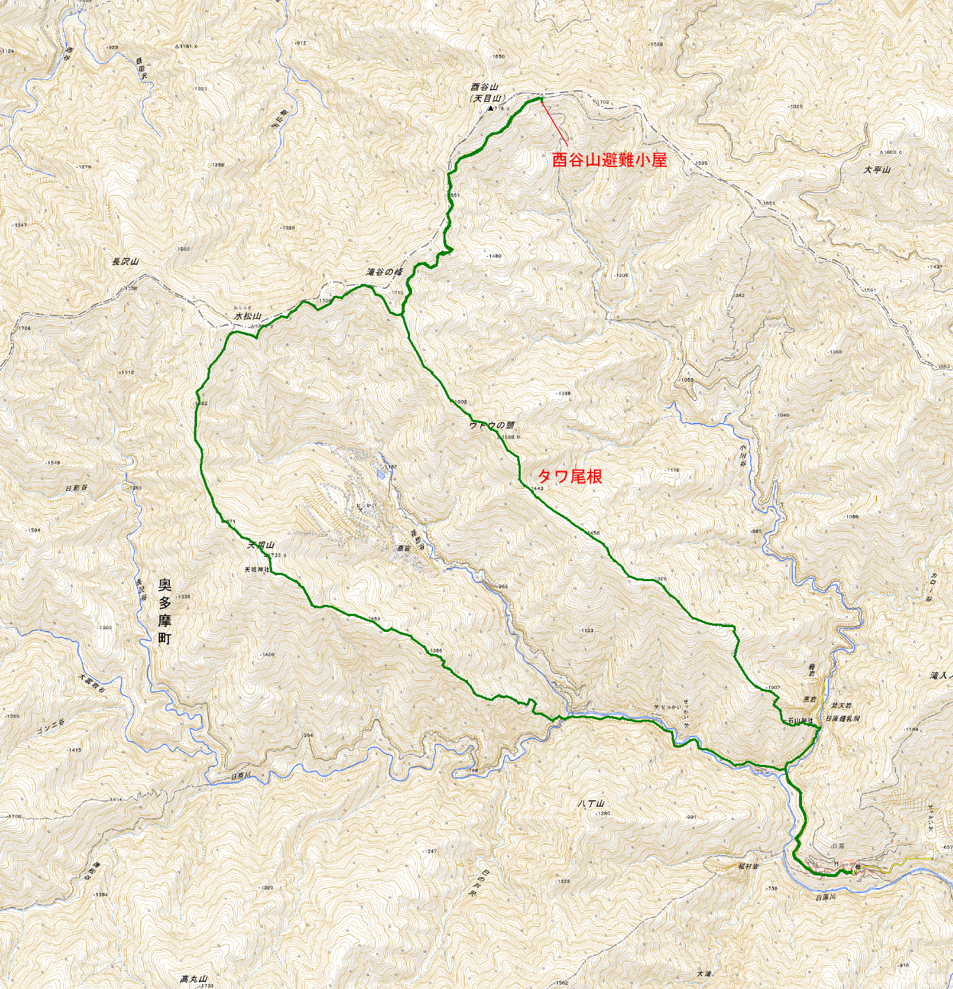 滝谷の峰に戻り、タワ尾根で東日原へ下山