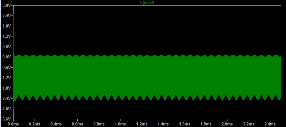 上記のようにLTSpiceに回路を入力し、トランジェント解析を行うと、250PFの両端に変調波で振幅が変化する10.7MHzが現れます。それをフィルターに通して10.7MHzをカットしてやれば、変調波の2KHzが取り出せます。