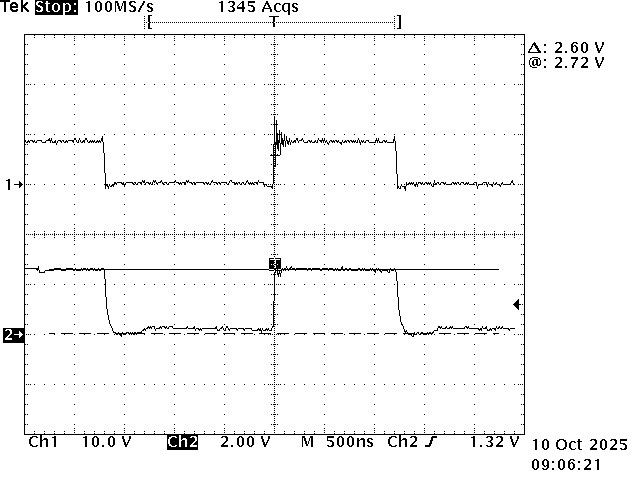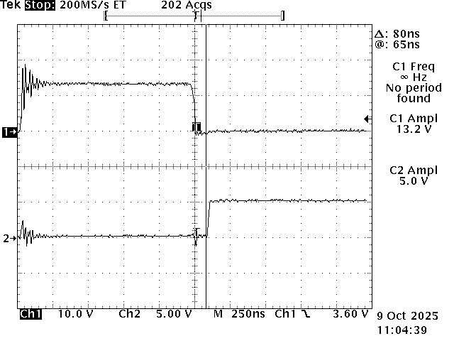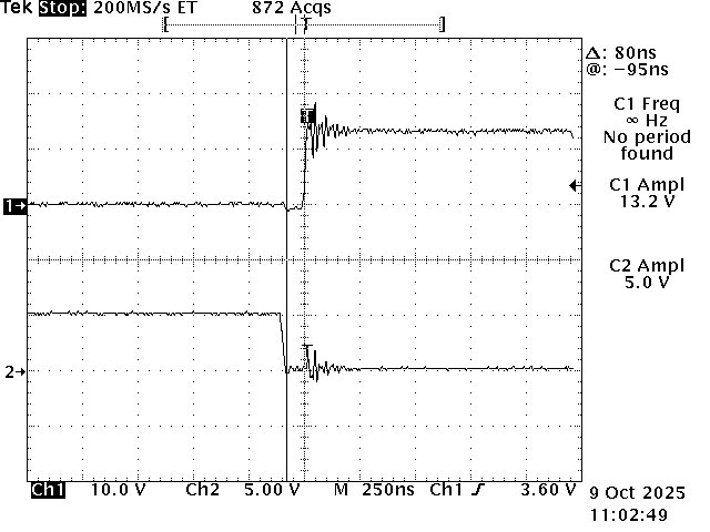 立ち上がり、立下りともに80nsくらいのデッドタイムが入っている
