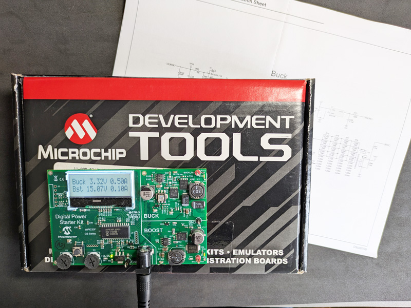 DM330017はPICマイコンで有名なMicrochip社のデジタル制御電源の学習用キットです。キットといってもすでに組み立てられたボードで、マイコンには制御プログラムが書き込まれているので、直ぐに実験を始められます。当局のDM330017はもう10年以上前にDigiKeyで購入したものです。うれしいことにMicrochip社のホームページには今でも掲載されています。ただしアップグレードされてDM330017-2となっているようです。以下はDM330017-2ではなく、古いDM330017についての情報ですのでご注意ください。DM330017とDM330017-2は回路が違います。