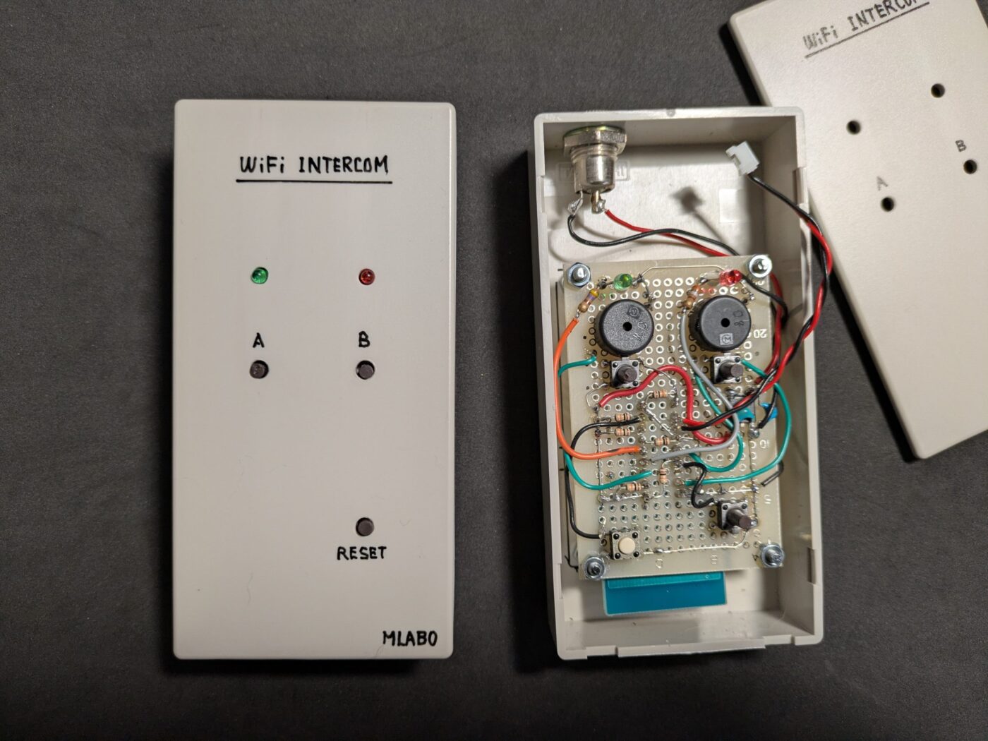 相手がボタンを押す(応答)と、ブザーが止まり、LEDが点灯に変わる(応答確認)ので、呼んだ側がボタンを押せば終了です