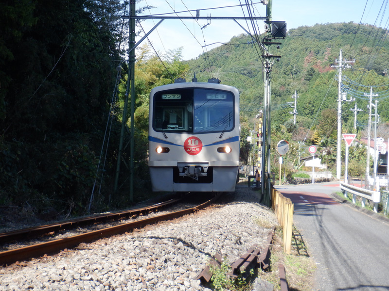 峠道が終わり再び県道195に出て、上信鉄道の横を歩く