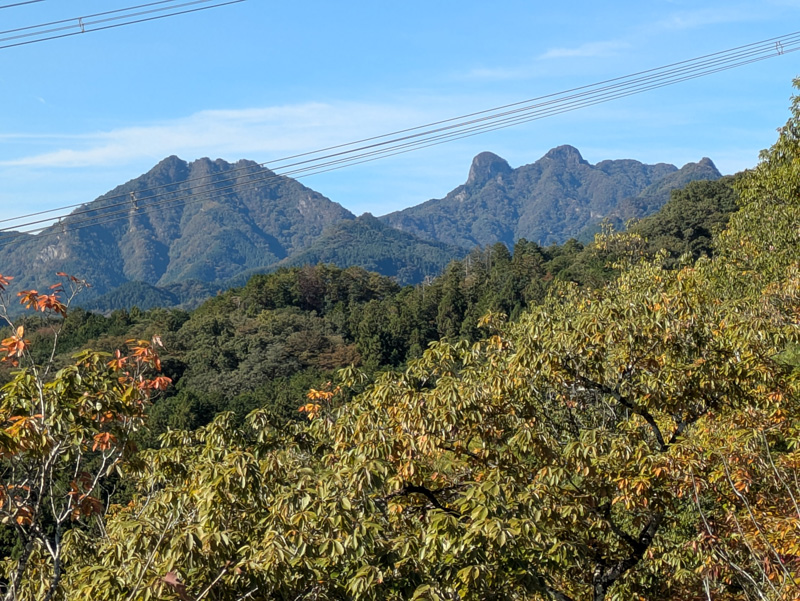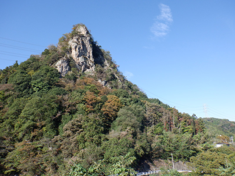 鏑川を渡る直前で古嶽山の岸壁を見上げる