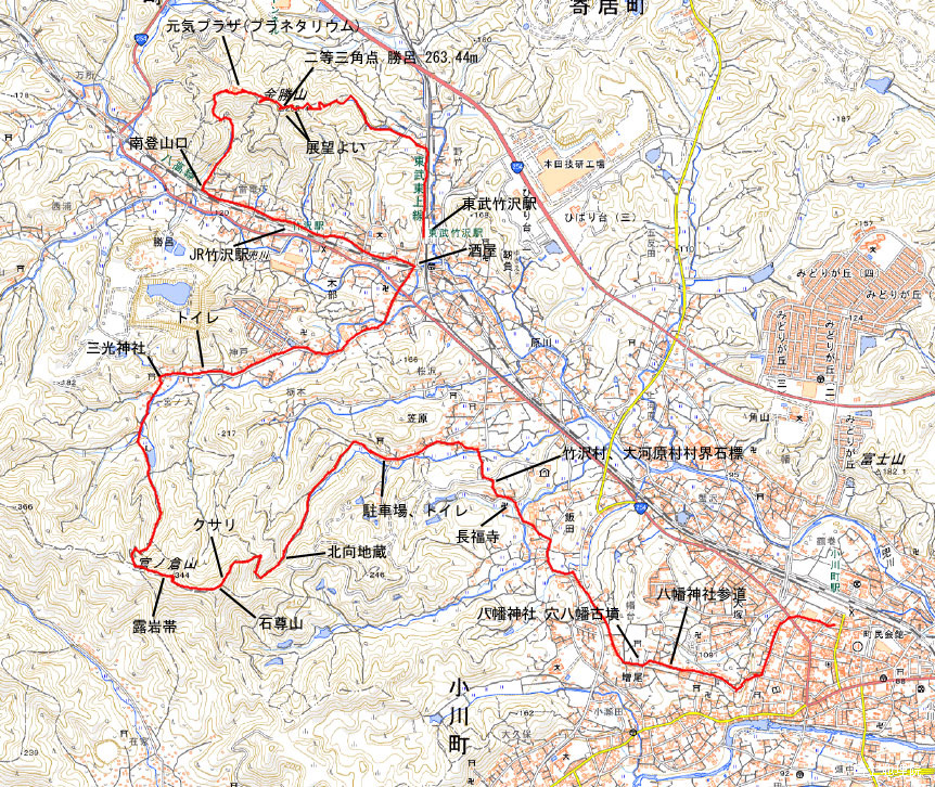 埼玉県比企郡小川町 東武竹沢駅から金勝山、官ノ倉山、小川町駅
