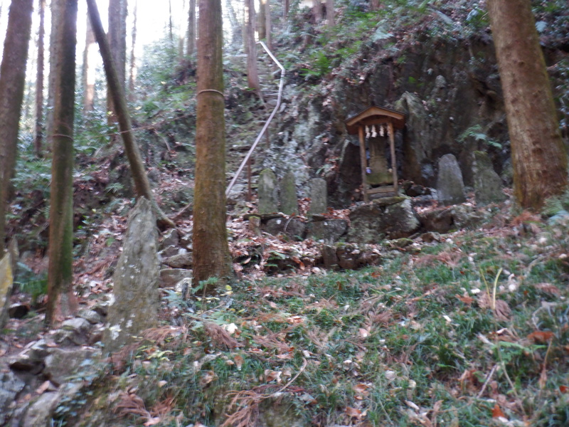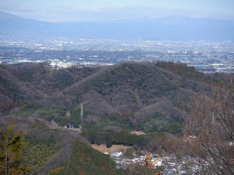 山頂の南側一段下がったところに石祠があります。ここにもベンチがあり風があたらないので暖かい場所です。一旦鞍部まで下って再び登って北側に進むと再び前方が開けます。石尊山です。数基の石祠が並んでいます。ここも展望のよい場所で、白くなった浅間山がのぞいていました。金勝山のげんきプラザもはっきり見えています。下山は北向地蔵から笠原、飯田を経て小川町駅に戻りました。今回は寄りませんでしたが途中に長福寺や八幡神社があります。
