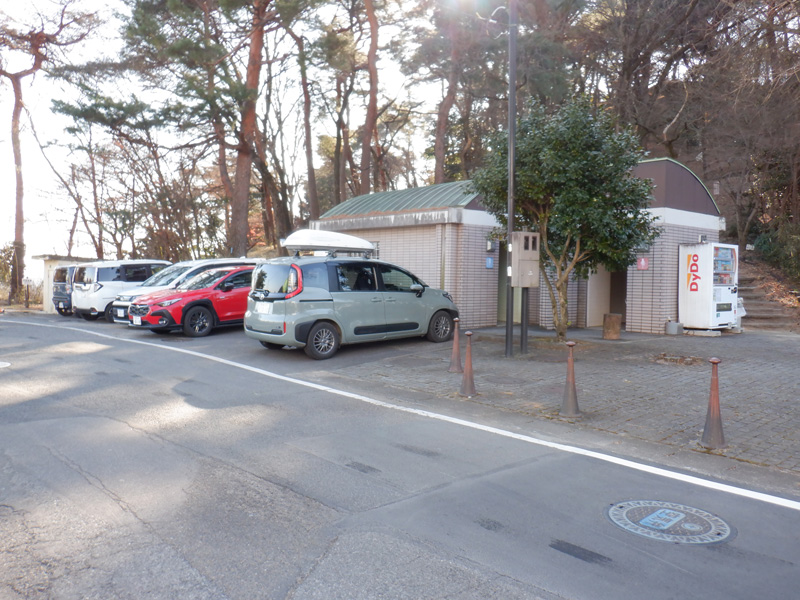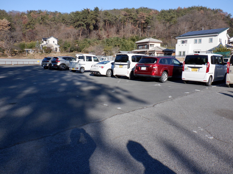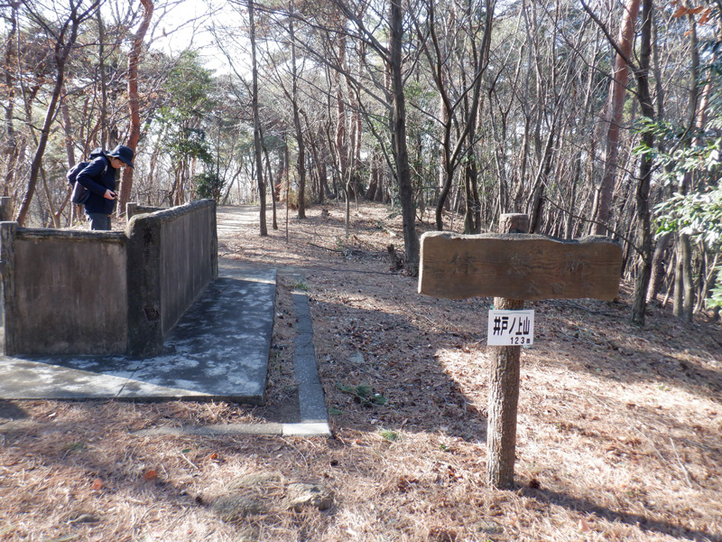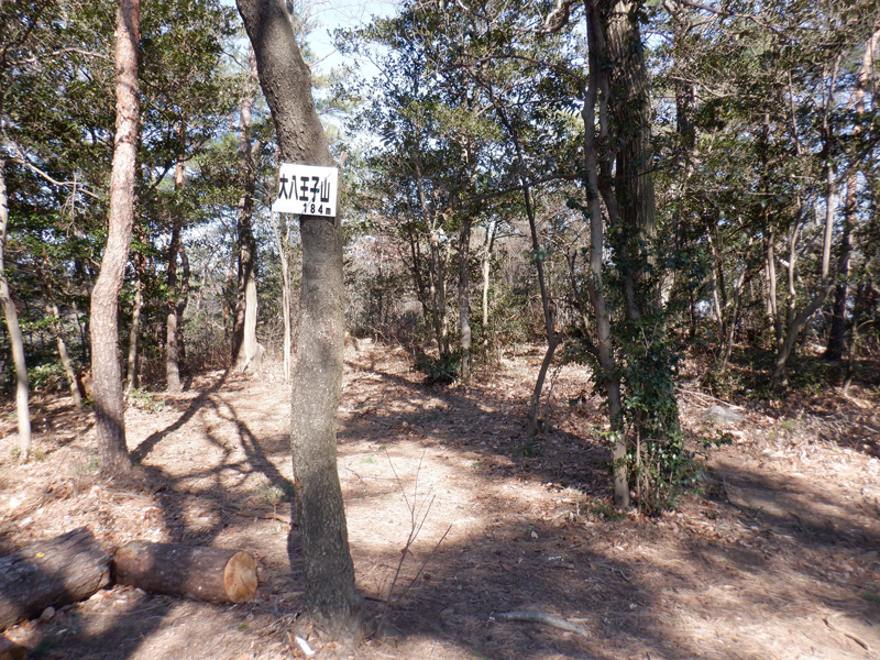 広い太田市営駐車場は無料です。車道を少し南下し大光院の前を通過して、民家の間を進むと受楽寺があるのでその前の東山コースに入ります。幅広の道をゆっくり登っていきます。コンクリートのベンチがあるのは井戸ノ上山です。少し下って親水公園に下り立ったら小さな駐車場(6台くらい)とトイレがあります。受楽寺からではなく、ここから登れば少しショートカットになります。親水公園の展望の丘を見て、南面の暖かい道を登ります。上に赤っぽい電波塔が見えますが、そこには直接行かず右奥へ進んで回り込みます。電波塔の北側に出ると東屋があります。小八王子山です。少し下った鞍部からは東側をトラバースするように道があり東山コースの道標がそちらを示していますが、我々はまっすぐ上に進み、尾根筋を外さずに中八王子山、大八王子山と辿りました。