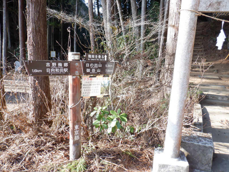 東京都青梅市 吉野梅郷の駐車場から琴平神社経由で三室山、日の出山、御岳山