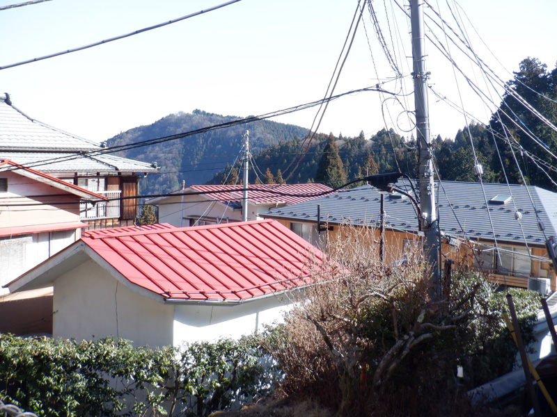 意外と近くに御岳神社と民家が見えている