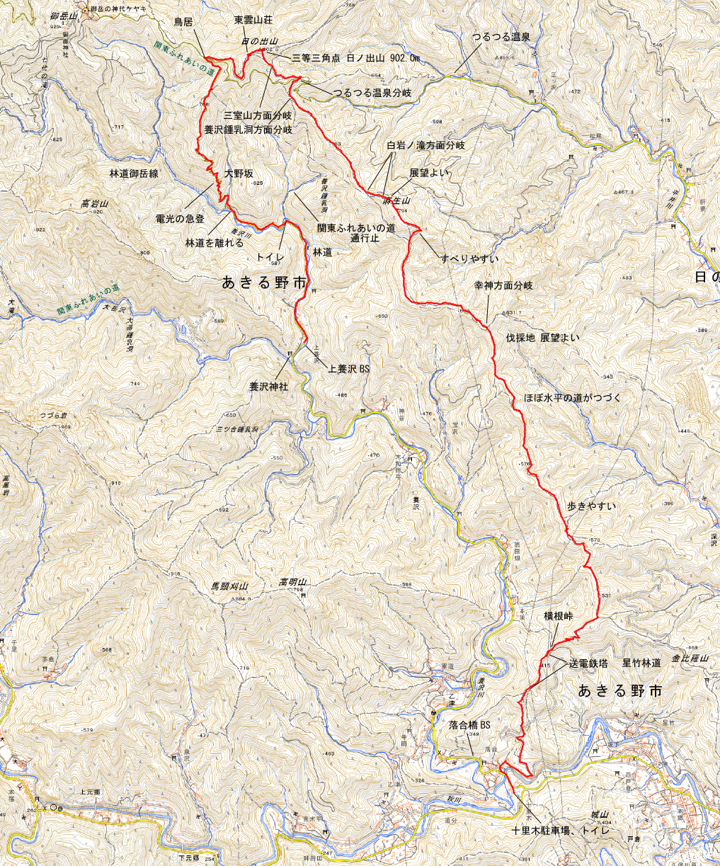 東京都あきる野市 上養沢から大野坂で日の出山、金比羅尾根で十里木へ下山