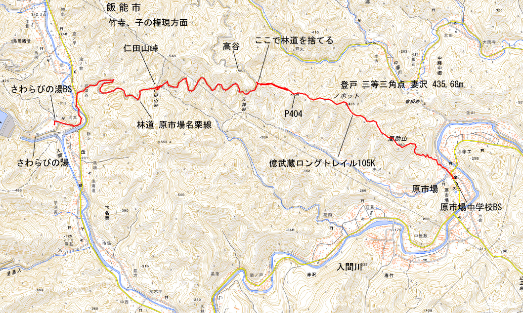 東京都飯能市 さわらびの湯から仁田山峠、ノポット(登戸)、周助山