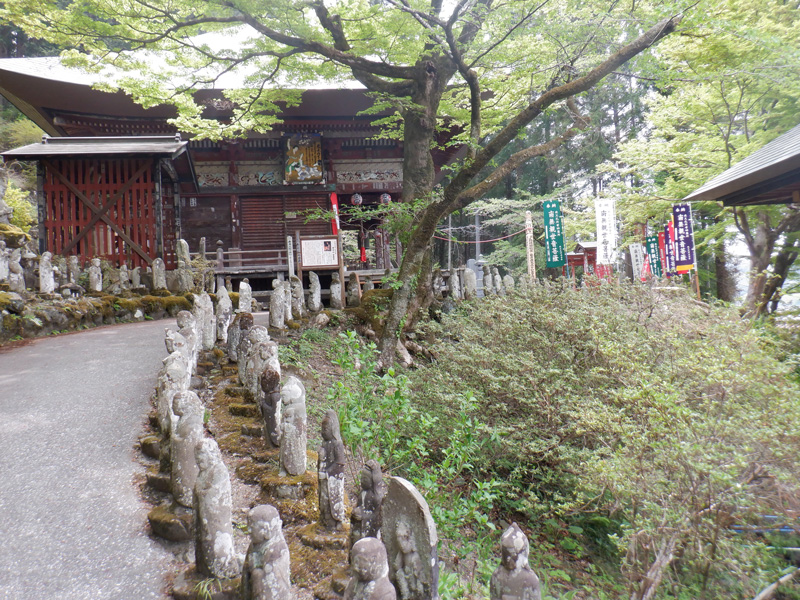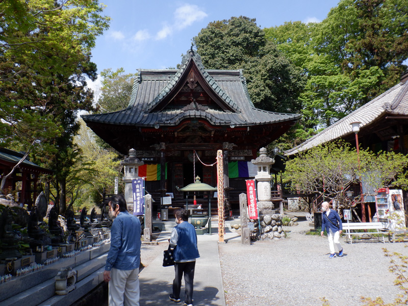 道は、一番 四万部寺から二番真福寺までは結構きつい登りです。路傍のかわいい石仏や、点在する道標石、春の花々を楽しみながら汗をかきます。二番からは山道の下り。新緑の下を歩きました。山田の温泉郷から明光寺(二番真福寺の御朱印はここで)に寄って、三番常泉寺へ。横瀬川が深く切れ込んでいる橋を渡ると、大岩の前にある寺です。少し高台にあるので、真福寺のある山が新緑に彩られているのがよく見えています。四番金昌寺までは町中を歩きます。新木鉱泉の側を通過し、県道を渡れば大きなわらじが吊り下げられた山門が見えてきます。金昌寺ではその石仏群に驚かされます。1300体以上あるとのことです。それぞれ表情が豊かです。この寺で最も有名なのは慈母観音です。一見の価値あり。四番から五番語歌堂までは道路をひたすら歩きます。道路わきに囲みもなく建っているお堂。小さなお堂ですが、立派な山門があります。境内に藤棚があるので咲くころはみごとでしょう。六番の卜雲寺は少し奥にあるので七番の法長寺に先に訪れました。駐車場の広いゆったりしたお寺です。伏せ牛の像が三体もありました。卜雲寺はブドウ畑の前にあって、武甲山がよく見えています。境内はせまく、急坂を登ると数台停められる駐車場があります。八番の西善寺は少し歩かなければなりません。しかも直前に急坂が。しかし境内のイタヤカエデの老木はみごとです。この寺は少し離れて遠望すると武甲山を背景にしてお堂の屋根が雰囲気を醸し出しています。九番の明智寺へは西部秩父線沿いに歩き、横瀬駅の手前にある小さなお堂の寺です。ここは境内に数台駐車できるようです。東屋でちょっと休息し横瀬駅に向かいました。横瀬駅に着いたのはすでに16時45分ごろ。今から坂氷に行ってもバスは終わっています。仕方がないので横瀬駅から西武秩父線と秩父鉄道で大野原駅まで電車で移動し、大野原駅から四萬部寺の愛車まで3kmを歩きました。