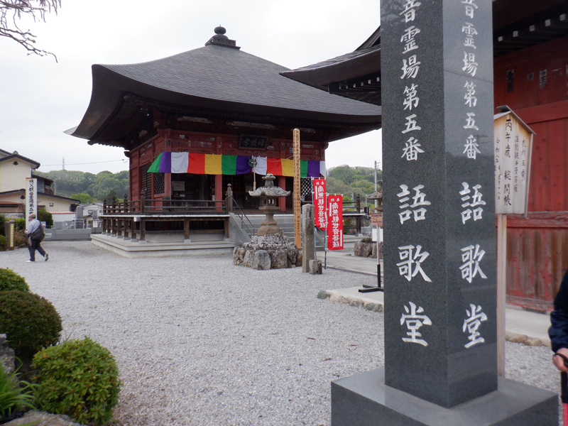 各寺は「午歳総開帳」ということで、普段は上がれない本堂に上がらせていただき、近くからご本尊を拝める寺が多いです。また観音様の手とつながっている五色の紐「結縁紐」(けちえんひも)が回向柱(えこうばしら)に結ばれて、参拝者が触れられるようになっています。これでご本尊の右手に触れて結縁を得たことになるようです。ありがたやぁ!本堂には五色幕がかけられ、さまざまな色ののぼり旗が立てられて、にぎやかです。