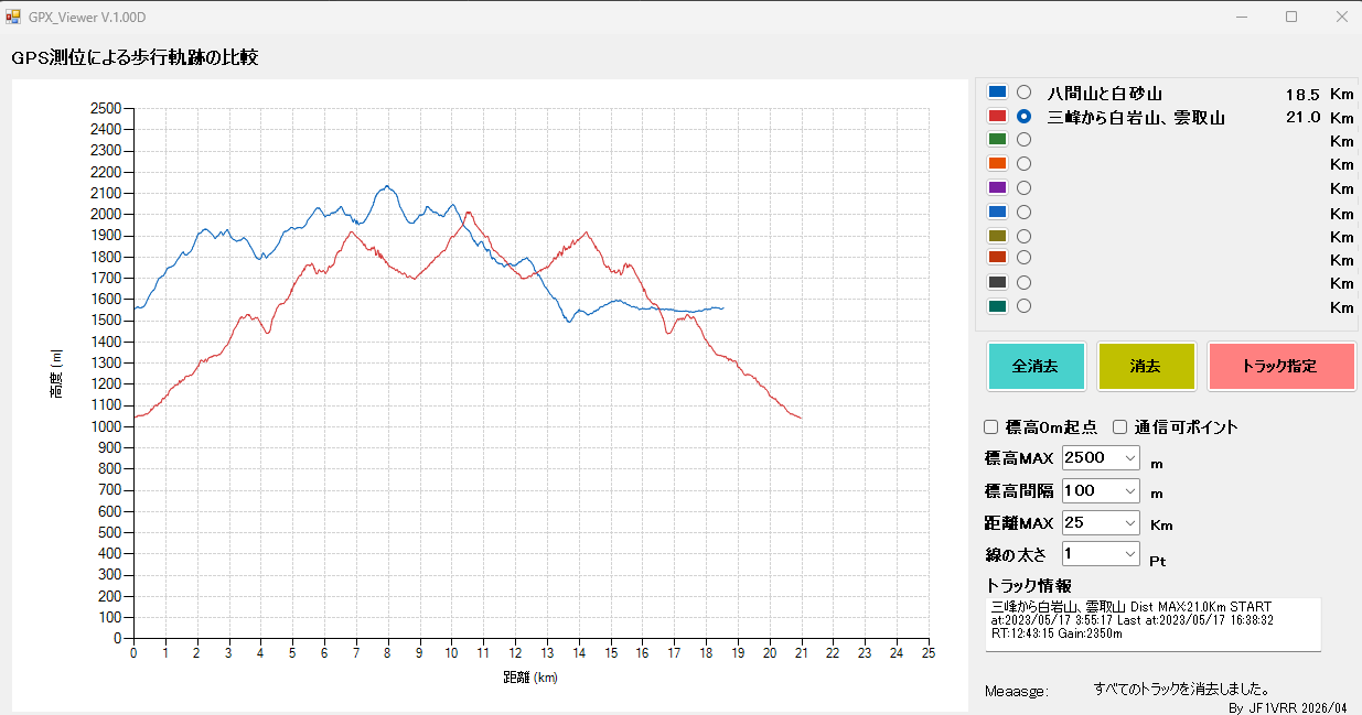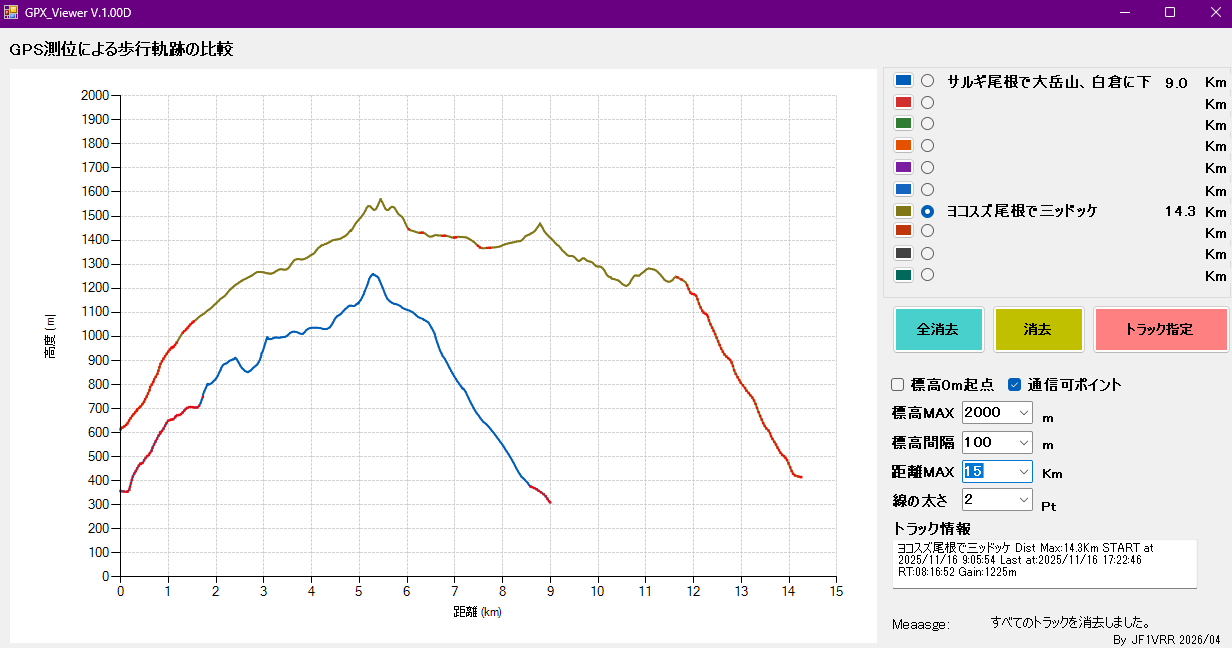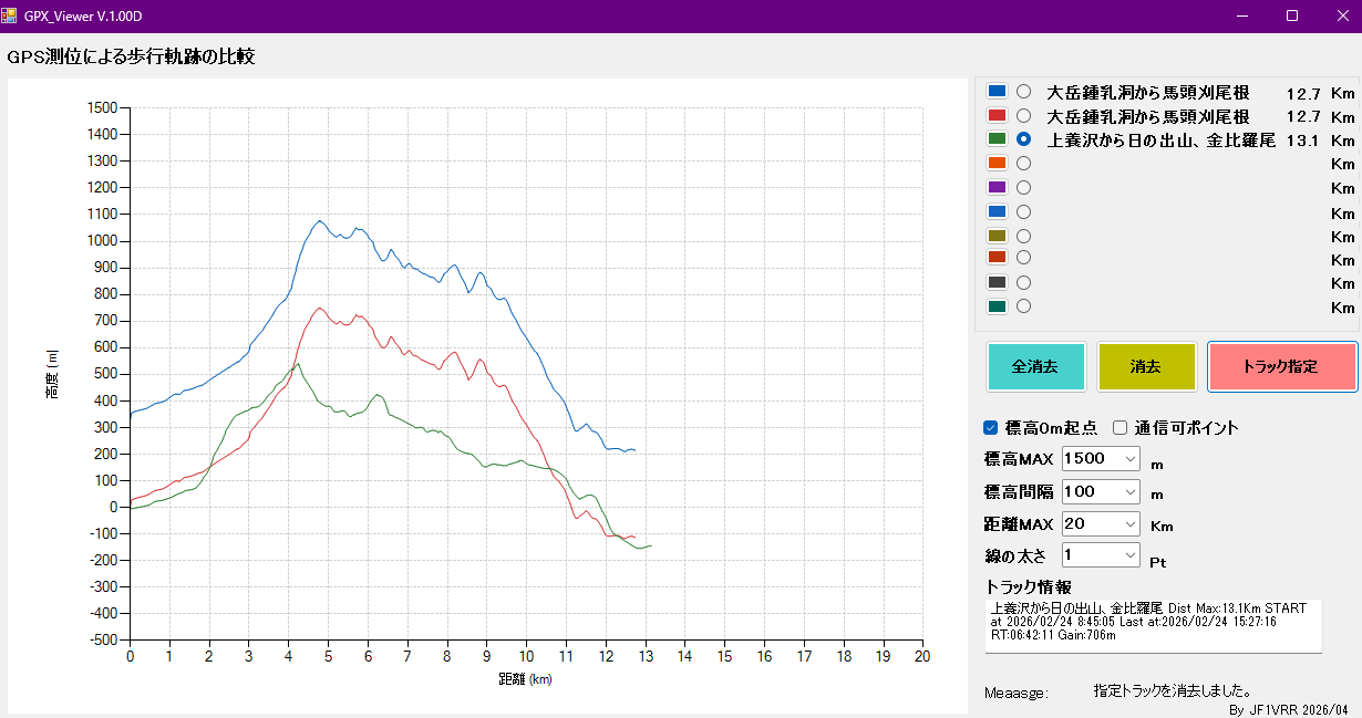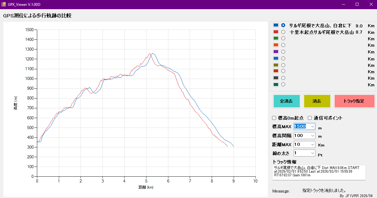 GPX_Viewerを作ってみました。登山などの歩行軌跡を距離/高度のグラフで視覚化するソフトです。